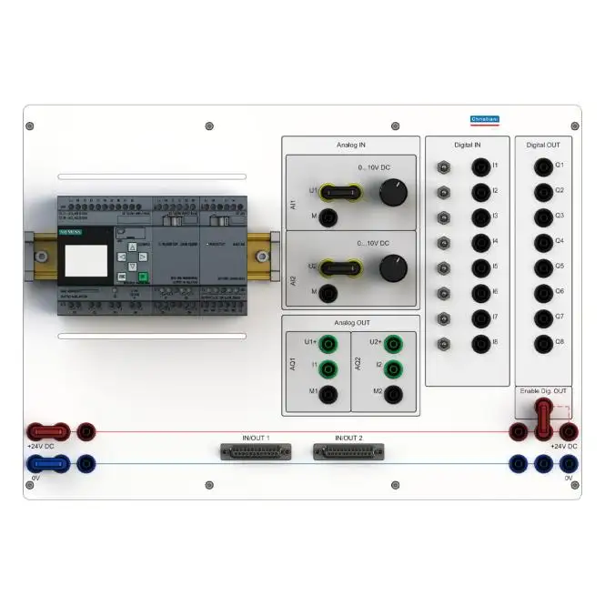 Bảng học tập LOGO! 8 tích hợp bộ điều khiển Siemens SIMATIC LOGO! 8 12/24 RCE, hỗ trợ đấu dây trực quan, giao diện mở rộng SUB-D, thiết kế tối ưu cho giảng dạy tự động hóa.