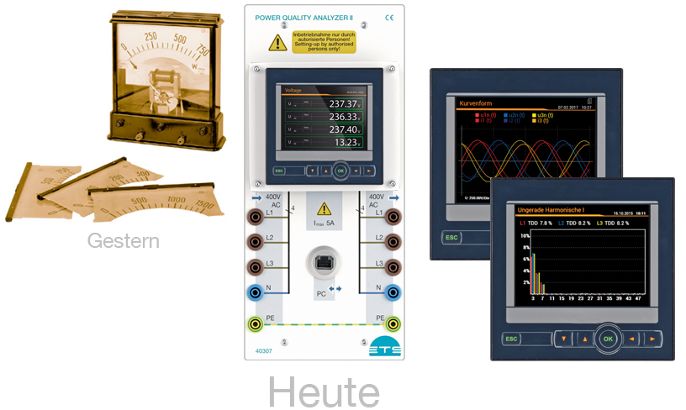 Các mối quan hệ khó khăn giữa dòng điện, điện áp, công suất (công suất biểu kiến, công suất hoạt động, công suất phản kháng), cosφ và sóng hài cũng được giải thích bằng đồ họa cho người tiêu dùng đã biết.