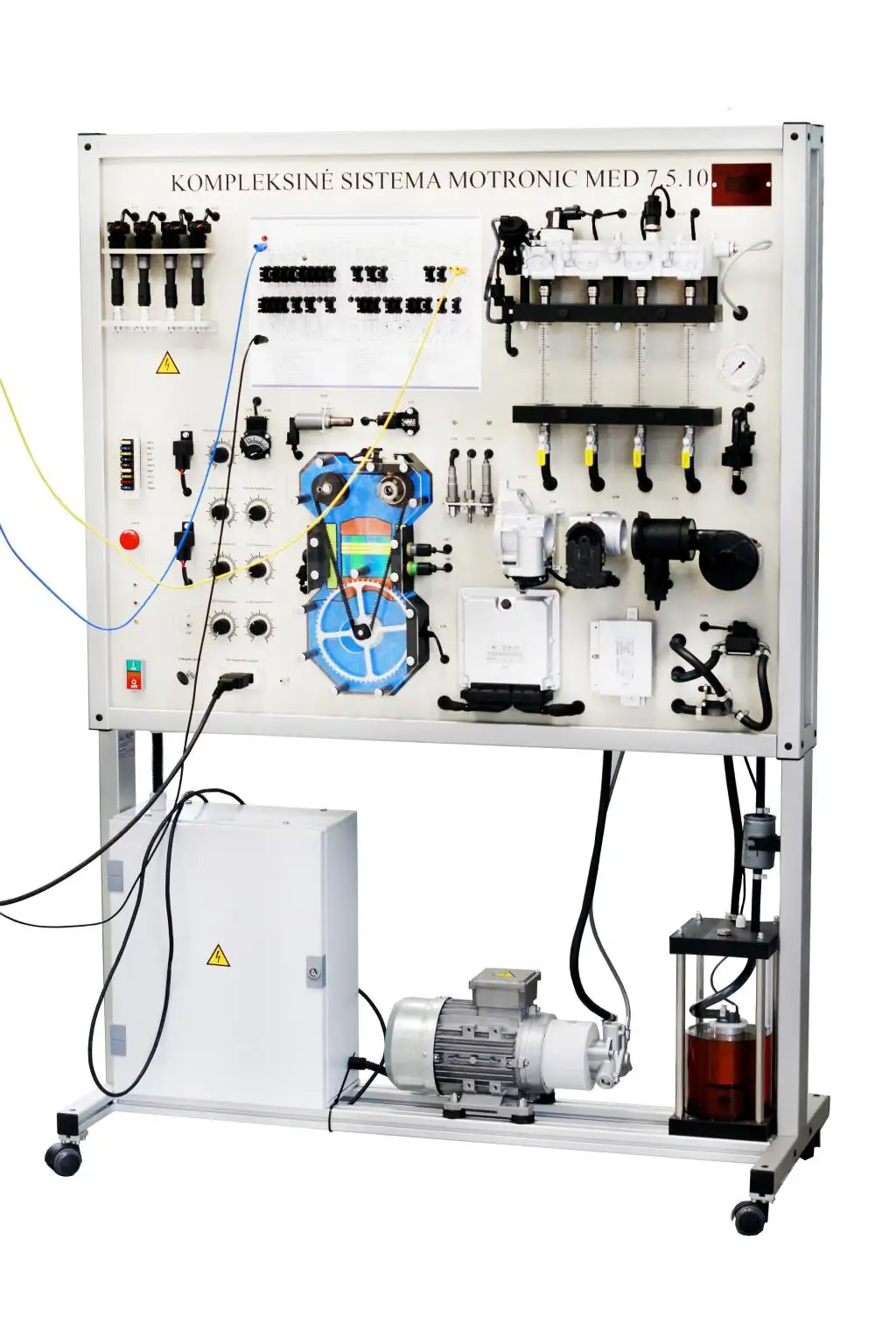 Hệ thống điều khiển động cơ đầy đủ chức năng được lắp đặt trong khung nhôm di động. Thiết bị đào tạo này được thiết kế đặc biệt để giúp sinh viên kỹ thuật hiểu hệ thống phun xăng trực tiếp (FSI) MOTRONIC MED 7.5.10. Bảng đào tạo giáo dục dựa trên các thành phần OEM của Audi/VW. Hệ thống điều khiển động cơ tích hợp hiển thị các chế độ vận hành khác nhau của hệ thống phun nhiên liệu trực tiếp/đánh lửa.