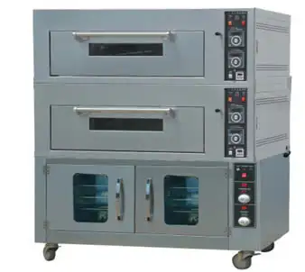 Lò nướng điện công suất cao, đạt tiêu chuẩn ISO 9001:2000, tích hợp tính năng ủ bột với 12 khay. Thiết kế bền bỉ, tiết kiệm năng lượng, phù hợp cho các tiệm bánh chuyên nghiệp.