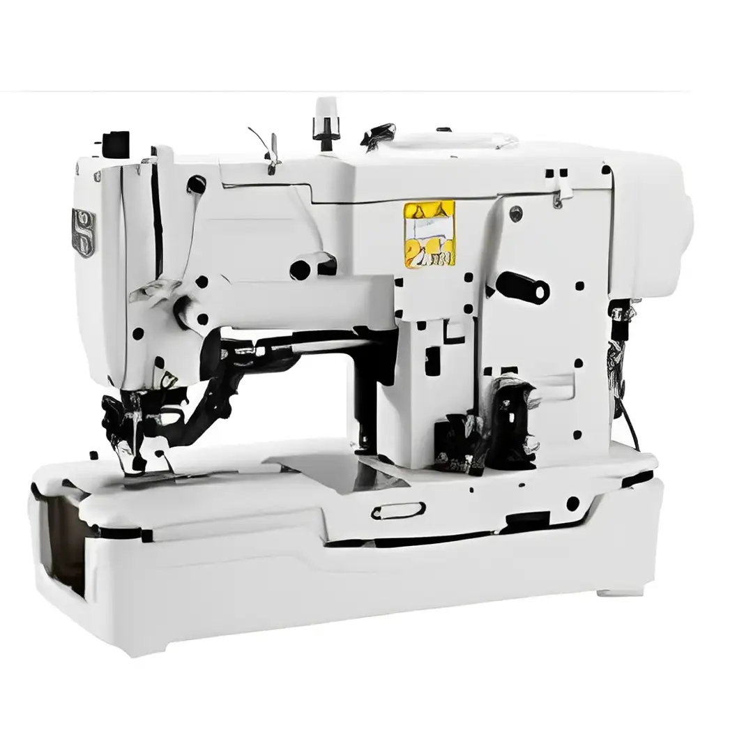 Máy thùa khuyết tốc độ cao 3.600 vòng/phút, điều chỉnh linh hoạt độ rộng 2.5-5mm và độ dài 6.4-19.1mm. Hệ thống bôi trơn tự động, bàn kẹp nâng tối đa 12mm, phù hợp cho sản xuất may mặc chuyên nghiệp.