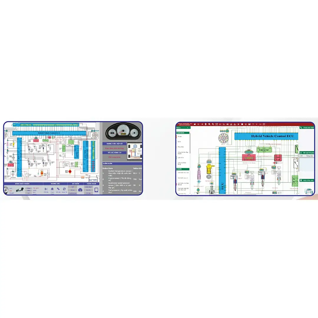 Mô phỏng hoạt động của hệ thống hybrid: Người học có thể thực hành đấu nối và kiểm tra các thành phần trong hệ thống truyền động hybrid trước khi thao tác thực tế.