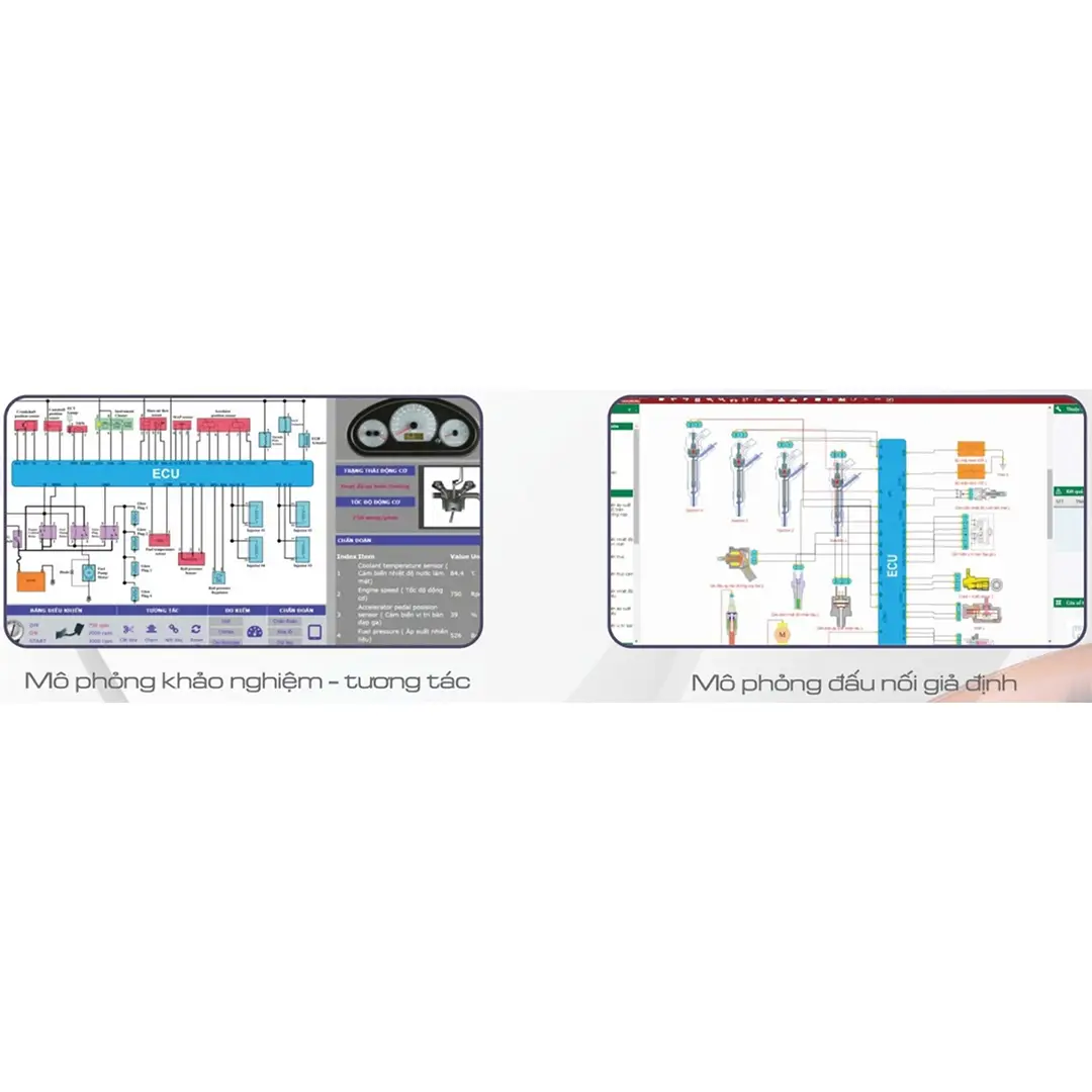 Nguyên lý hoạt động: Mô phỏng nguyên lý hoạt động của hệ thống phun dầu điện tử CDI thông qua hình ảnh động tương tác. Người dùng có thể thay đổi các thông số đầu vào để khảo nghiệm các thông số đầu ra với các thiết bị đo kiểm ảo.
