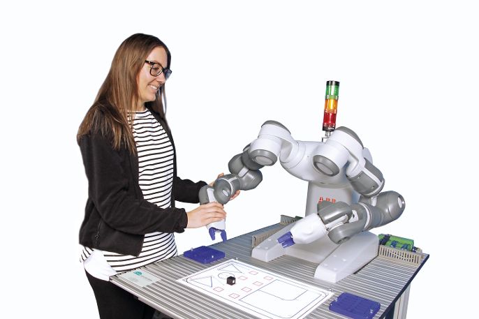 Robot công nghiệp hai cánh tay cộng tác (còn gọi là COBOT) được tích hợp trong một khái niệm đào tạo toàn diện của ETS DIDACTIC và được trang bị các chương trình giảng dạy mở rộng.